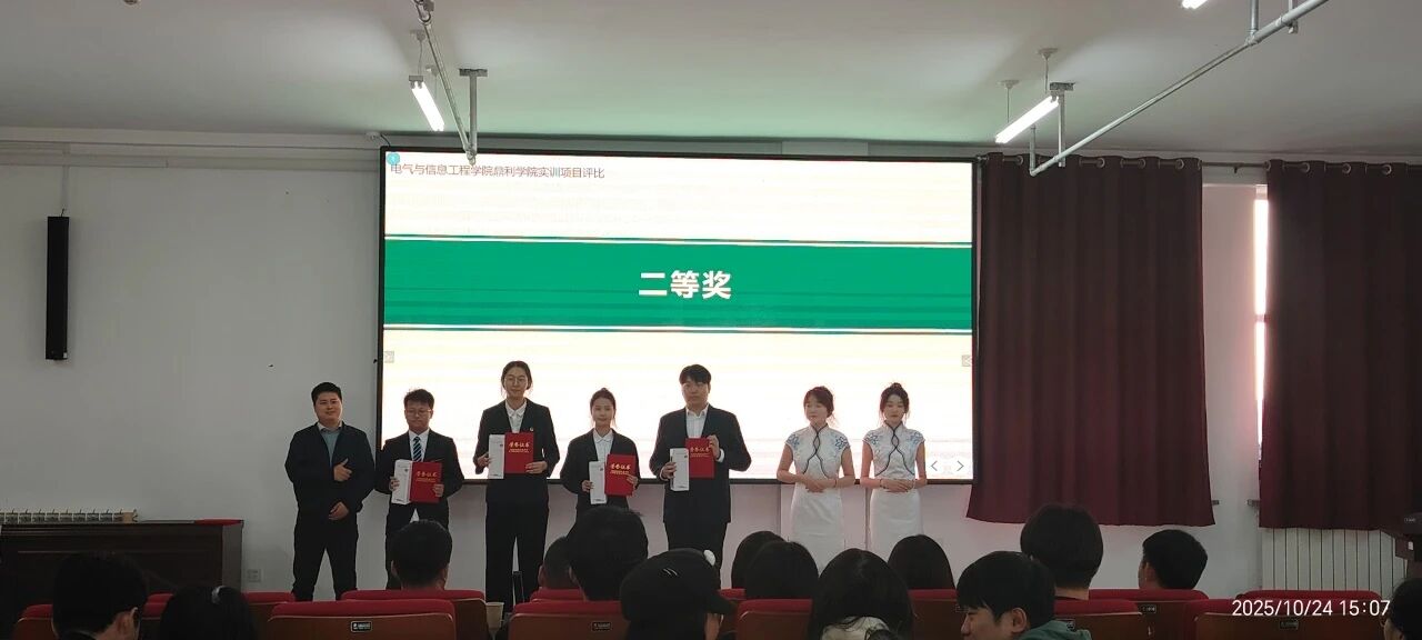 为搭建学生专业成果展示平台,激发创新思维,促进校企人才培养交流,2025年10月24日,电气与信息工程学院于明德楼520开展了“2026届毕业生实训项目评比”活动的复赛评审。活动首阶段已由各专业班级于2025年9月15日至10月15日进行了内部初评,复赛阶段则是对各专业推荐的优秀项目进行集中展示与最终角逐。