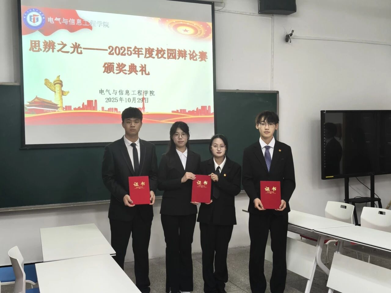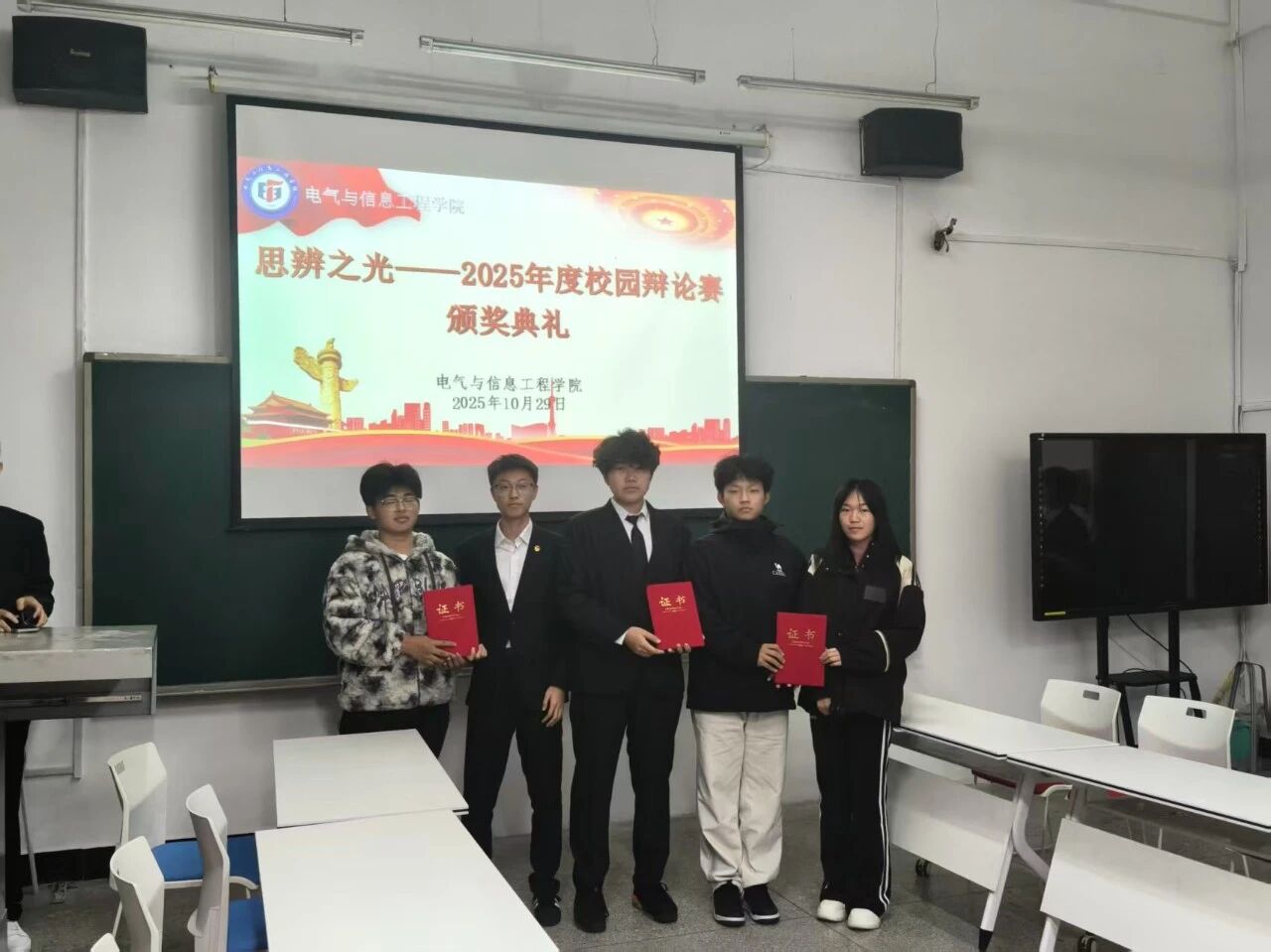 为提升同学们的逻辑思维与语言表达能力,2025年10月29日,电气与信息工程学院学生会学习建设部于明仁楼201举办思辨之光—2025年度校园辩论赛。