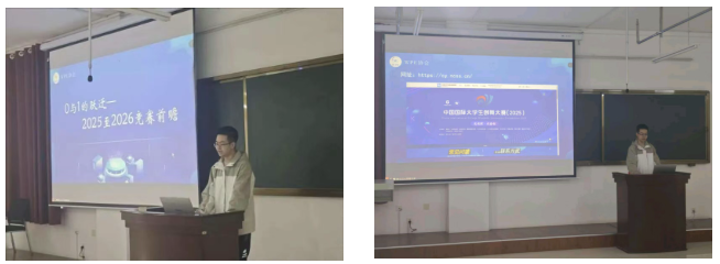 WPE协会社长蔡浩田同学以自身竞赛经历为切入点,向同学们分享了备赛路上的感悟。他谈到,自己从大一零基础起步,曾历经熬夜钻研代码的艰辛、团队磨合的挑战,在一次次尝试与总结中,最终摸索出“小赛练手、大赛深耕”的备赛节奏。“别怕起步晚,敢尝试就能攒足经验!”学长结合自身经历的鼓励话语,让在场同学备受鼓舞,增强了参加学科竞赛的信心。
