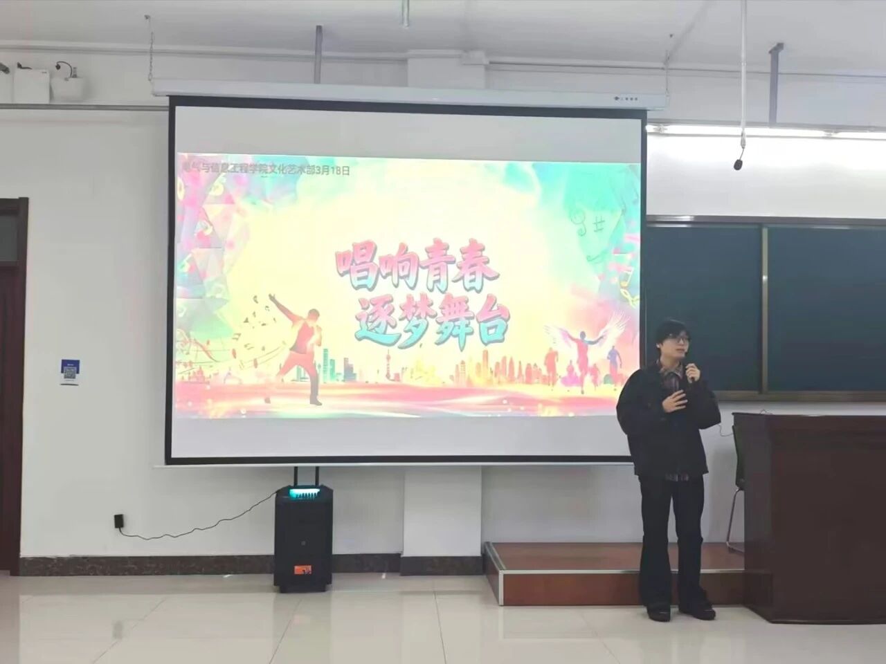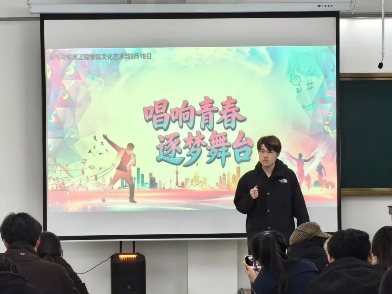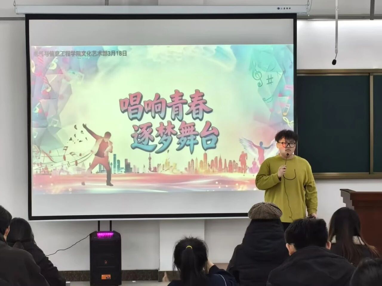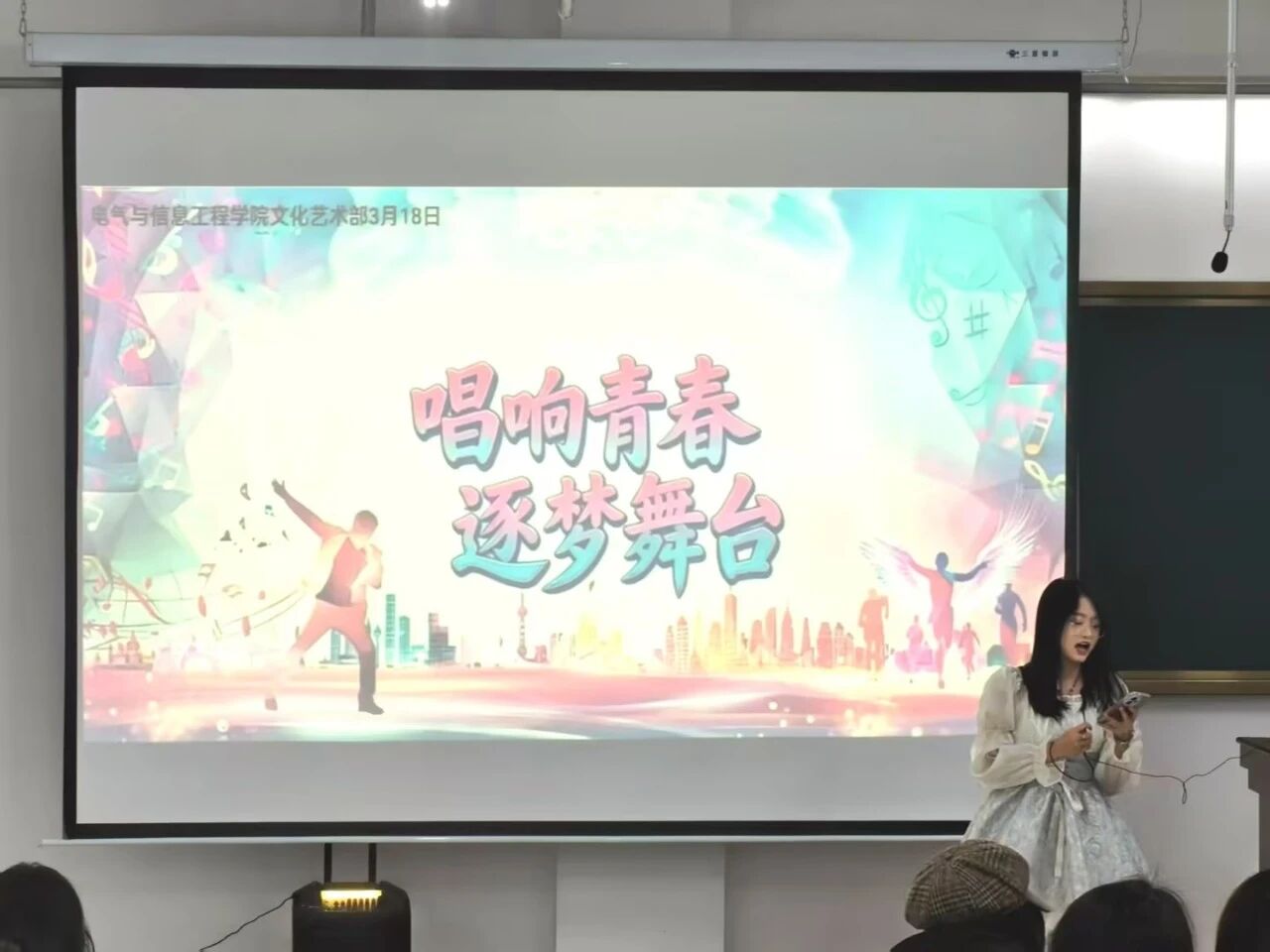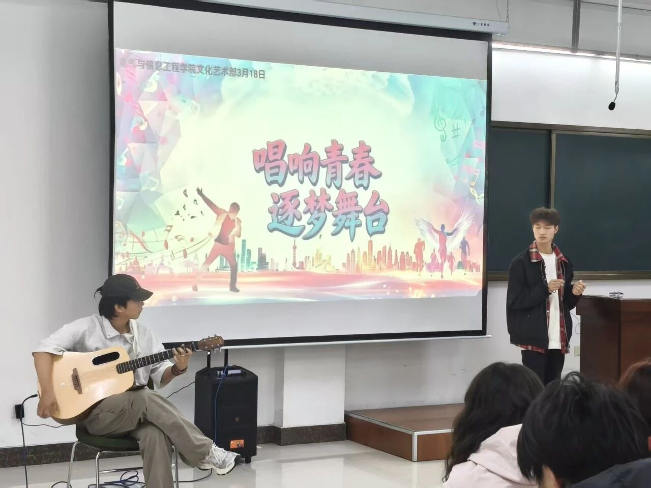 为丰富校园文化生活,展现青年学子昂扬向上的青春风采,营造积极活跃的校园艺术氛围,2026年3月18日,电气与信息工程学院学生会文化艺术部于明德楼501教室举办“唱响青春,逐梦舞台”校园歌手大赛。本次大赛邀请学生会主席王若余、赵洋及各部门负责人担任评委,共同见证同学们的精彩表现。